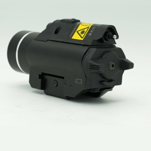 Лазерный модуль доступен в двух вариантах: с красным или зелёным лучом. Красный лазер имеет длину волны 635 нм и мощность менее 5 мВт — безопасный для глаз и чётко видимый в сумерках. Фонарь выдаёт световой поток до 380 люмен, обеспечивая уверенное освещение тактической зоны действия. Время непрерывной работы составляет 3–4 часа при использовании двух батарей CR123A (перезаряжаемых, 3.7 В).
