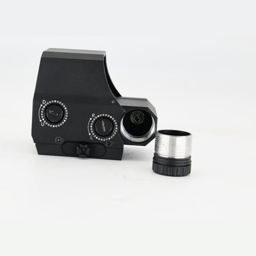 Оптика защищена от параллакса (≤2 МОА) и построена на базе высококачественного лазера 635 нм. Прицел оснащён 13 уровнями яркости для дневного режима и 3 — для работы с приборами ночного видения. Система питания использует батарею CR123A, обеспечивая до 2000 часов непрерывной работы при средней яркости. Индикатор заряда позволяет в любой момент проверить уровень питания, а при снижении уровня включается предупреждающее мигание метки.