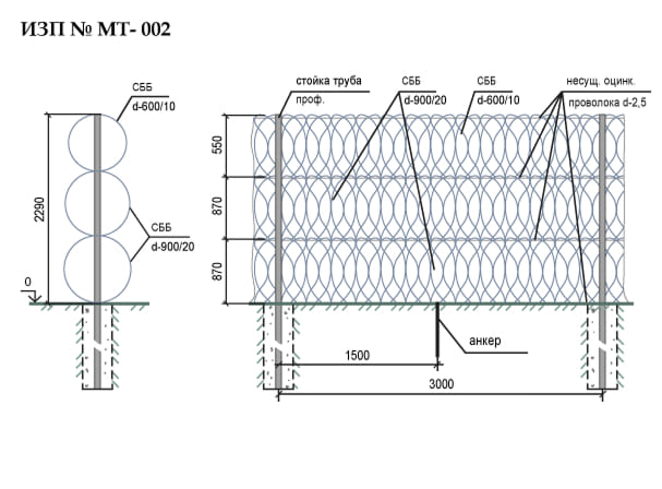 Инженерно-заградительные препятствия (ИЗП) могут использоваться для создания ограждений различной высоты, ширины и плотности. Монтаж возможен как непосредственно на грунт, так и на существующие сооружения и ограждающие конструкции. Решения поставляются в комплектации, необходимой для установки под ключ, без необходимости дополнительного дооснащения.