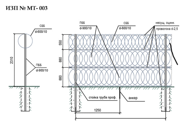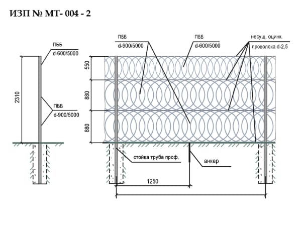 Инженерные заграждения представляют собой физический барьер, выполненный на основе сварной сетки и/или колючей проволоки, который ограничивает несанкционированный доступ на охраняемую территорию.